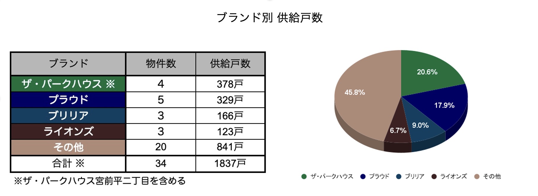 なお、マンションブランド別に供給戸数を集計したところ、以下のような結果になりました。